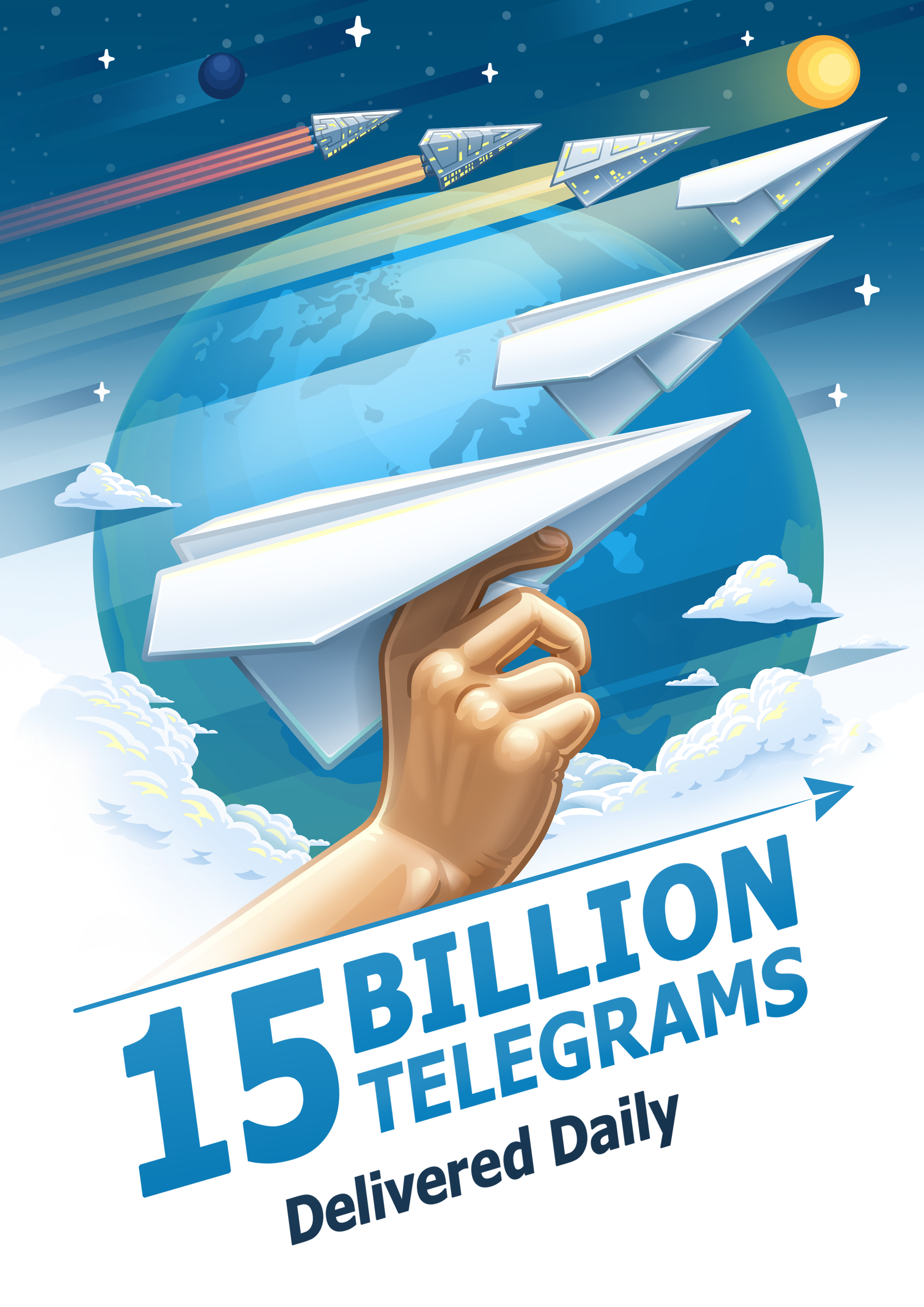 Two and a half years after launch, Telegram is delivering over 15 billion messages daily – that's roughly the number of push notifications that are sent by Telegram each day. All thanks to you.
